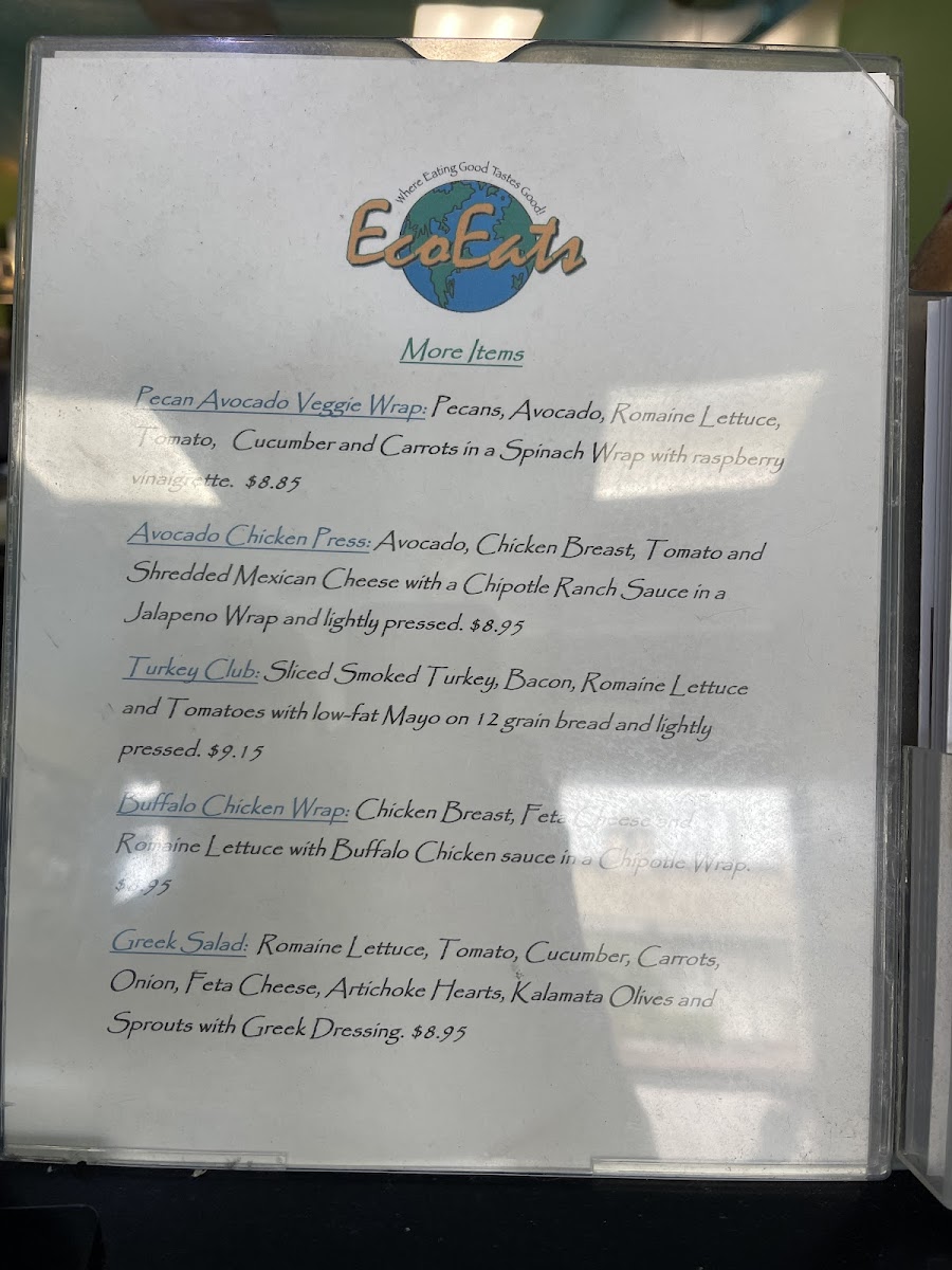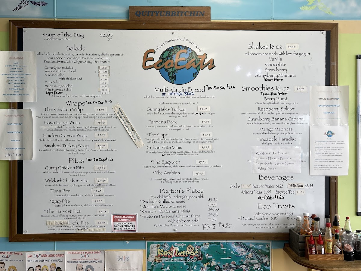 Introducing Eco Eats, a gem located in the heart of Key Largo at 99607 Overseas Hwy. This vibrant eatery offers a menu brimming with wholesome wraps, invigorating salads, and refreshing beverages—all at wallet-friendly prices. The standout wraps include the Thai Chicken Wrap and the flavorful Cayo Largo Wrap, priced between $8.75 and $9.15, catering to diverse palates.